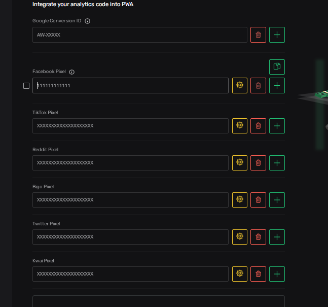 У такой экосистемы есть еще одна фича, которую уже оценили сотни вебов — вся активность ЦА видна в едином окне. Не обязательно постоянно проверять отчет в FB, потом статистику в трекере и партнерке, пытаясь свести все это в Google Sheets. Вся основная статистика по воронке доступна прямо в личном кабинете конструктора. Сервис PWA Group показывает все: и клики с инсталлами, и уников с открытиями приложения, и подписки на пуши, реги с разбивкой по гео и девайсам и т.д. Веб сразу видит точку отвала юзера, и может на лету вносить правки, не стопая РК. Кроме того, в несколько кликов можно интегрировать в PWA пиксели рекламных платформ или трекер.