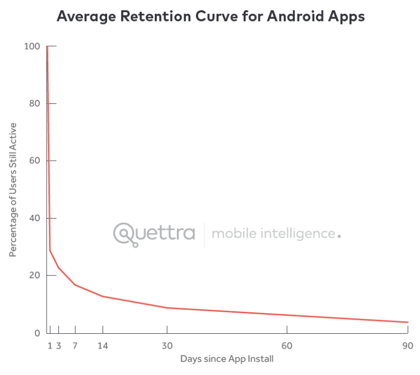 Если копнуть чуть глубже, то можно заметить, что ситуация еще хуже: в первые три дня приложения в среднем теряют до 77% трафика.