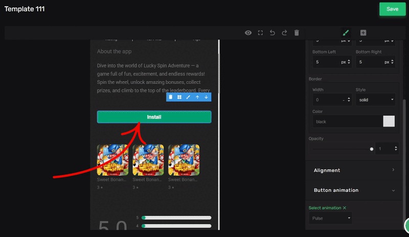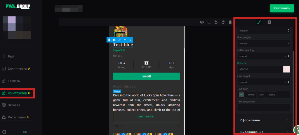Именно для решения таких задач команда сервиса PWA Group переосмыслил свой подход, внедрив новый конструктор шаблонов. Теперь байер не ограничен жесткими рамками: можно менять цвета любых элементов и текста (включительно с выбором горизонтальной и вертикальной ориентации текста под экзотические восточные гео), подгоняя их под культурный код конкретного региона, что напрямую влияет на доверие пользователя и конечный инсталл.