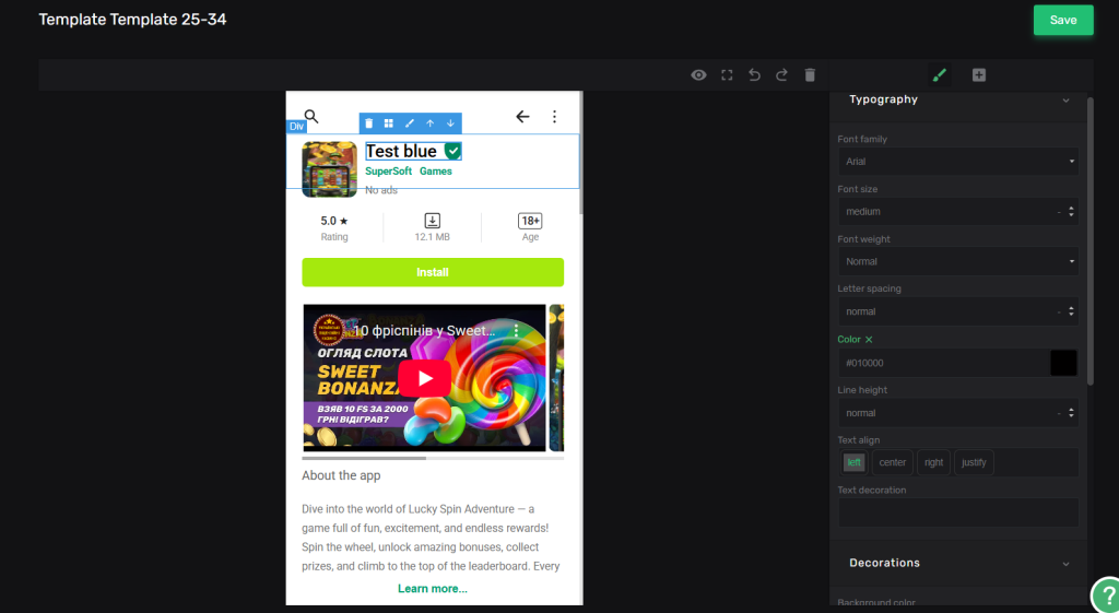 Учитывая факты, описанные выше, PWA-прилка должна встречать эти когорты абсолютно по-разному. Молодежи хорошо заходит подача в формате глубокой геймификации прямо с порога, где есть яркие кислотные gif-иконки, агрессивная анимация слотов на приветственном экране или вовсе видео геймплея, вставленное из Youtube. Для игроков постарше лучше использовать чуть более сдержанный казиношный дизайн с ноткой «солидности, приватности и элитарности». По возможности лучше использовать в дизайне крупные контрастные кнопки, четко читаемый текст призыва к действию и никакого лишнего визуального мусора. Такая кастомизация раньше была доступна только при разработке PWA под заказ. Но в 2026 году PWA Group зарелизили конструктор шаблонов, в котором можно изменять размер, местоположение каждого элемента прилы, а также выбирать цвет и шрифт в зависимости от гео, оффера или сегмента ЦА. Более того, собрать из готовых модулей агрессивный дизайн для первой группы и спокойный трастовый интерфейс для второй, просто переключая готовые пресеты в рабочем кабинете, можно за несколько минут.